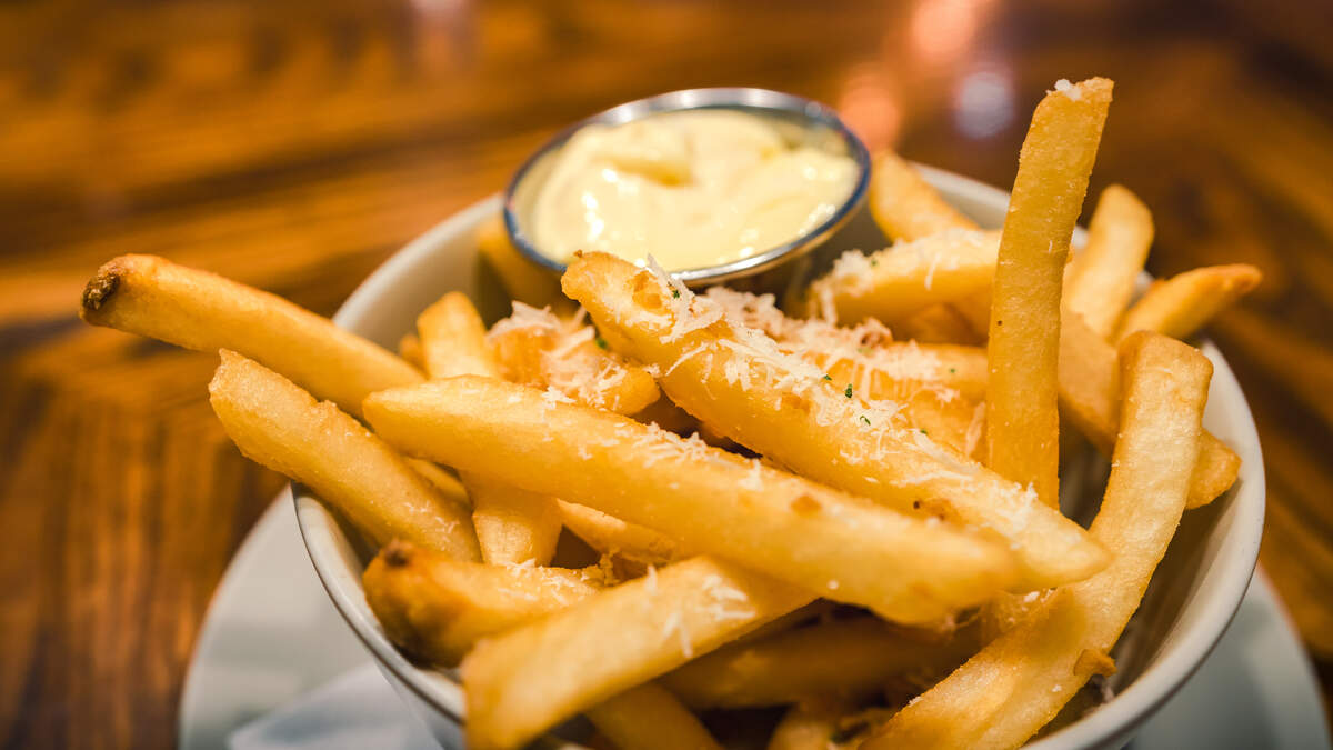 - The thrice-cooked fries are first blanched in Dom Perignon Champagne and J. LeBlanc French Champagne Ardenne Vinegar — aged in small oak barrels.